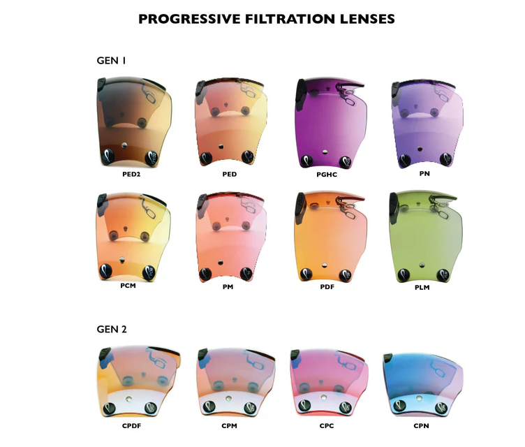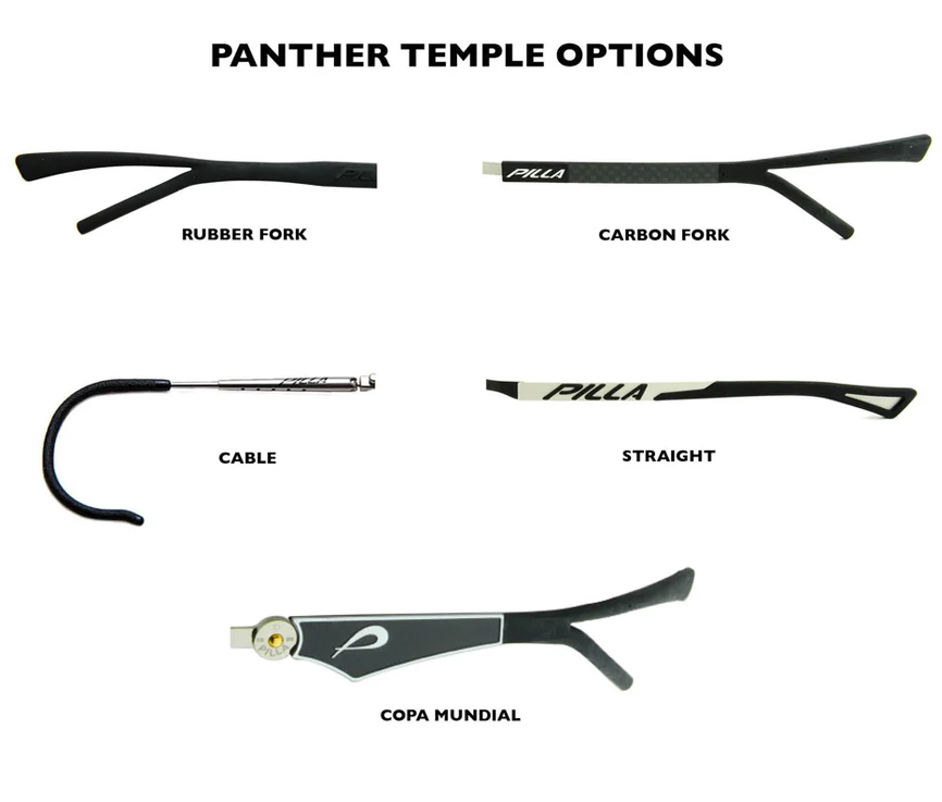 This new High Performance Carbon Fiber Temple system and integrated rubber sweat bar have enhanced the fit and utility of the Panther Systems. The soft rubber sweat bar allows a better exhausting of air on the back side of the lens while providing a comfortable wearing experience against the forehead. The Carbon Fiber fork temple system is light weight and provides excellent grip.